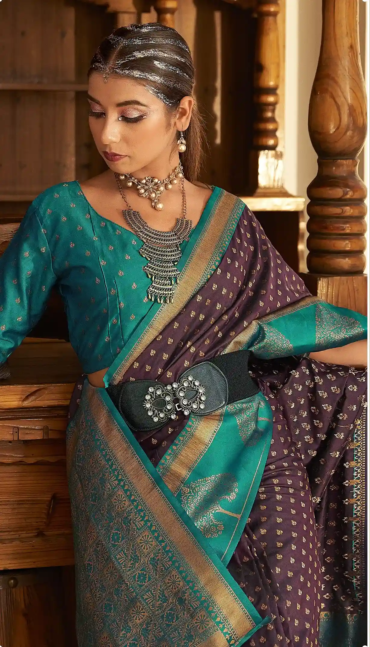 | Work | Soft Banarasi Paithani & Enhanced With Copper Zari Weaving & Rich Pallu Contrast Border |