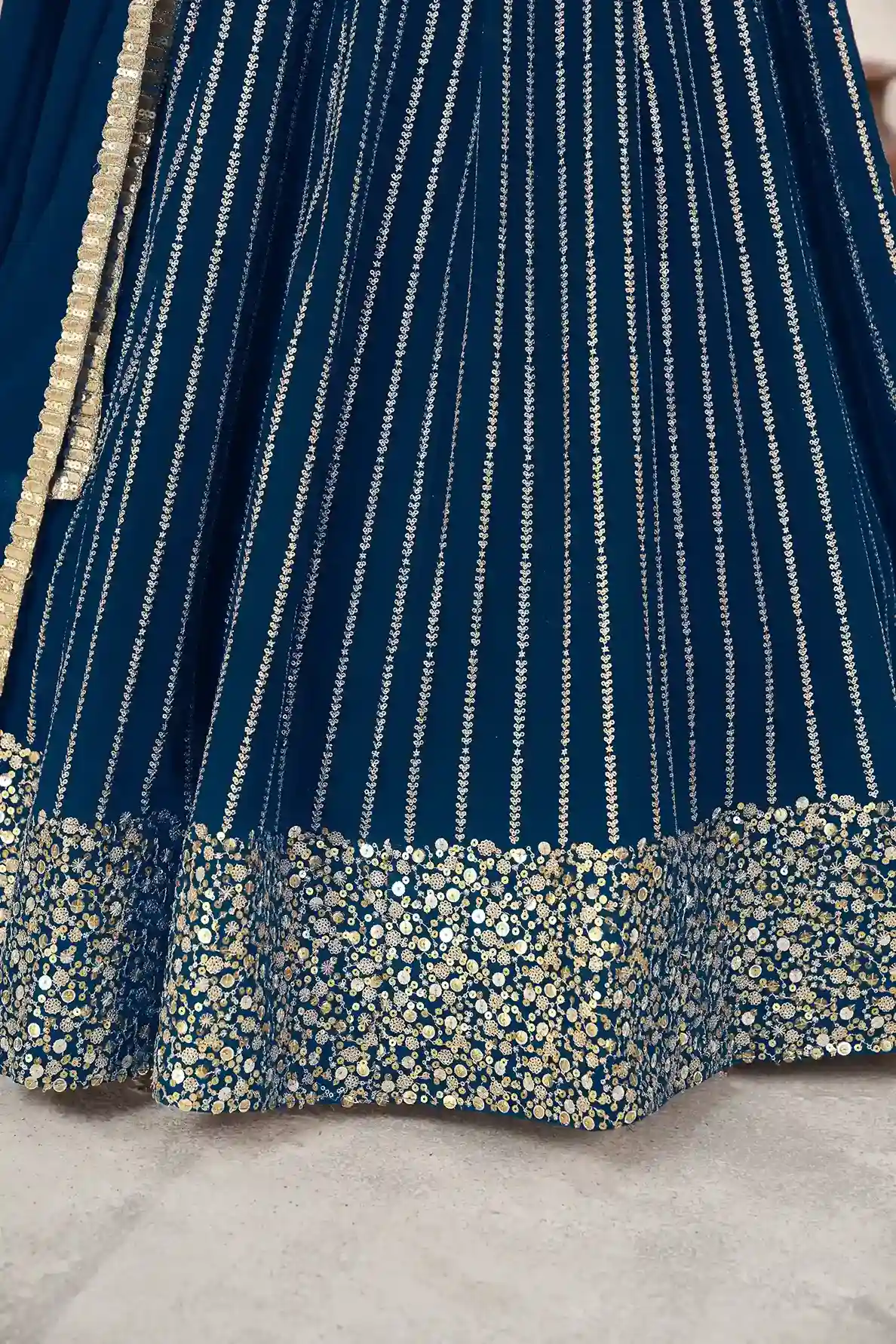 Glamorous Blue Sequins Embroidered Georgette Lehenga Choli For Wedding